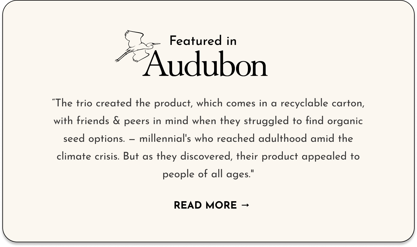 We're a team of lifelong bird lovers, working with seed scientists, ecologists, and farmers to craft blends that are as nutritious as they are sustainable.